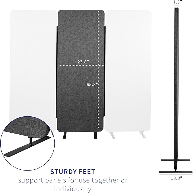 VIVO Freestanding 24 x 66 inch Privacy Panel, Cubicle Divider, Acoustic Wall Partition, Single 24 inch Panel with 2-Sided Zipper Attachment System, Dark Gray, PP-1-T024D