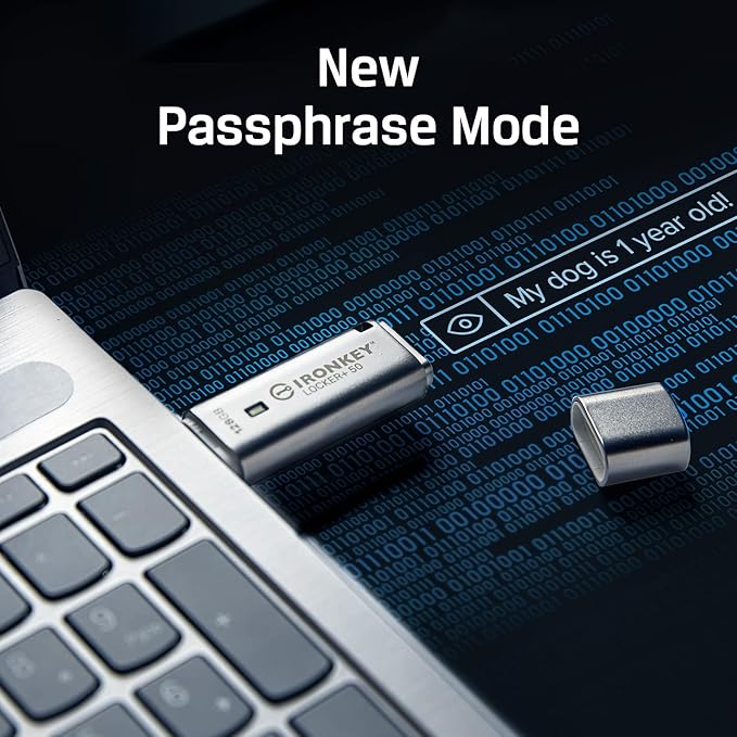 Kingston Ironkey Locker+ 50 128GB Encrypted USB Flash Drive | USB 3.2 Gen 1 | XTS-AES Protection | Multi-Password Security Options | Automatic Cloud Backup | Metal Casing | IKLP50/128GB
