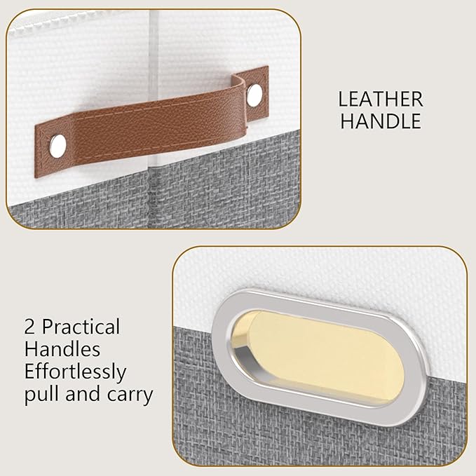 Yawinhe Fabric Storage Baskets, Foldable Closet Organizer for Shelves, Large Boxes with 3 Handles, Canvas Bins for Clothes, White/Grey, 12.99''Lx9.05''Wx7.87''H, 4-Pack
