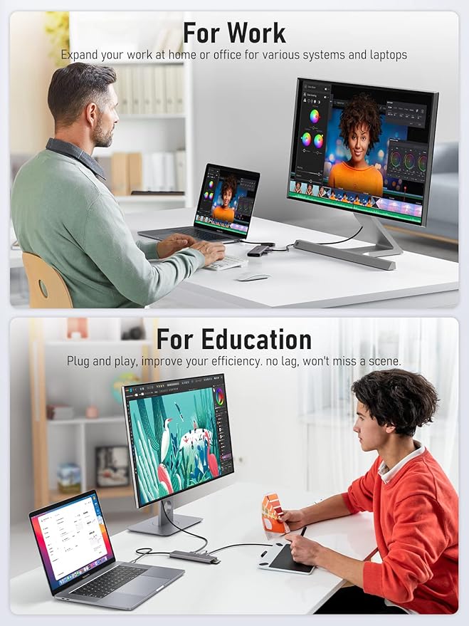 - 【Wide Compatibility】: Lemorele usb c adapter compatible with all systems and devices with USB C ports that support video output; such as Steam Deck / Switch / Xbox / PS4, Mac OS / Windows / Chrome OS / Android / iOS / Linux and compatible with MacBook Pro / Air M1, iMac, iPad Pro / Air M1, Dell XPS, Asus Zenbook, Huawei, HP, Lenovo, Microsoft Surface, various mobile phones, keyboards, mice and other external devices.