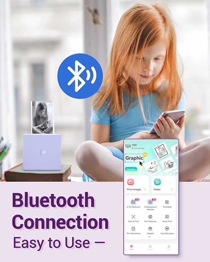 - Bluetooth Thermal Printer- Bluetooth 4.0 connection. System for Android 7.0 and iOS 13.0 or above. Phomemo M02 pocket printer is an inkless printer, you don’t need to buy any ink or toner. Portable mini printer help you save time