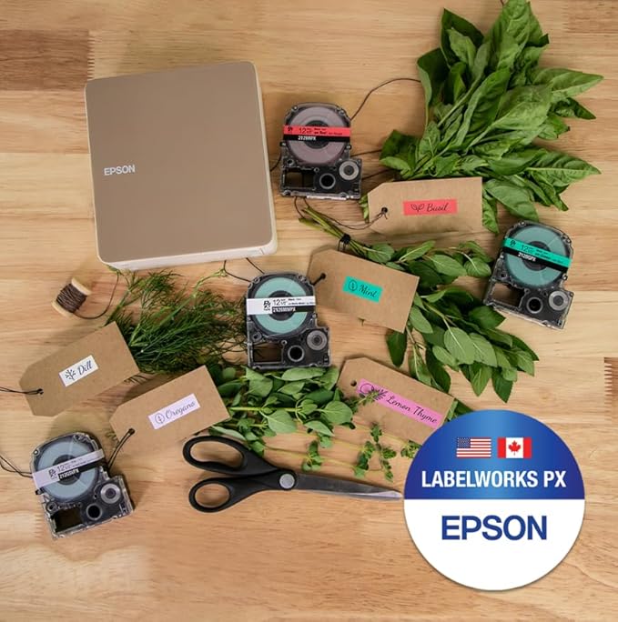 - DIMENSIONS AND COLOR - This Epson Labelworks Designer Collection tape is 3/4" (18mm) in width and 26 ft in length. The label maker tape is Matte Red and prints with Black text. Works with Epson LABELWORKS PX printers and K-Sun printers, more listed below and in product description.