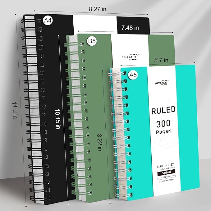 - TWIN-WIRE SPIRAL BOUND: RETTACY College Ruled Notebook features a sturdy twin-wire spiral bound, easy page turning as well as the ability to lay flat at 180°. The cover is made of PVC plastic which is waterproof and provides protection for your valuable notes