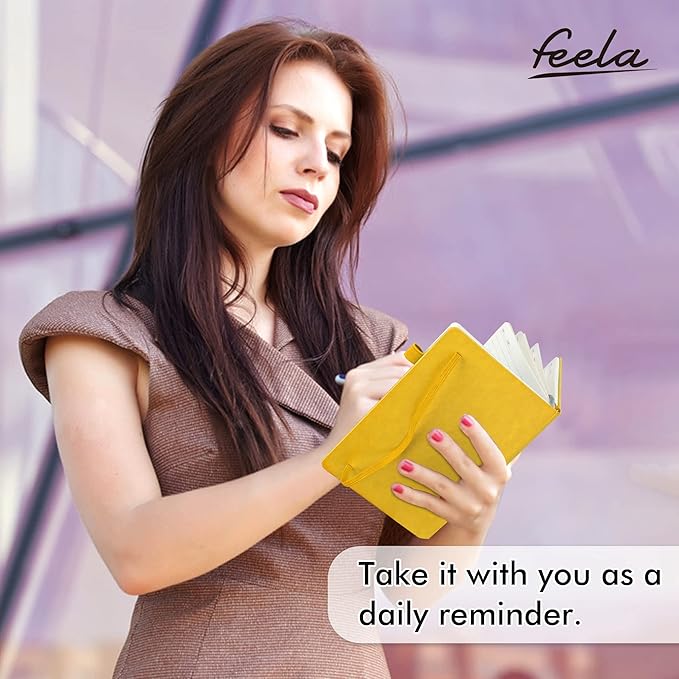 feela 8 Pack Journal Notebook Bulk for School, Hardcover Business Notebooks Classic Ruled Lined Journals with Pen Holder for Work Note Taking, with 8 Black Pens, 120 GSM, 5.1”x8.3”, A5, Yellow