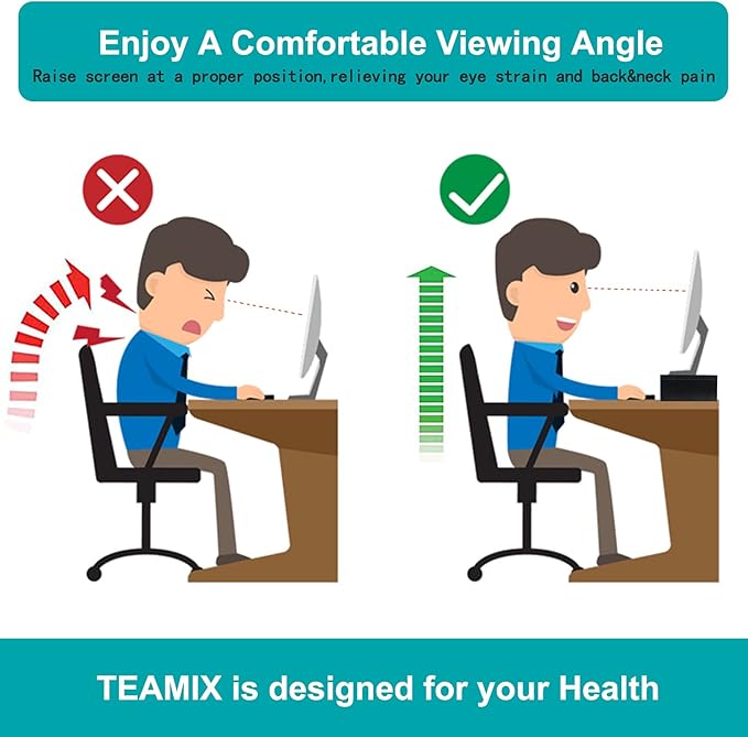 - ★Better Support★Stand can hold 80Ibs, there is a thick steel pipe stabilizing support structure on the back avoid shaking. TEAMIX monitor riser made of high quality MDF wood board, strong and sturdy.