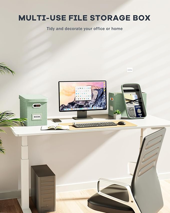 Oterri Hanging Filing File Box with Mesh Pocket, File Organizer Box with Lid, Collapsible Document Organizer Box for Letter Size, Easy Slide Durable Storage Box for Office/Decor/Home (2 PCS, Green)
