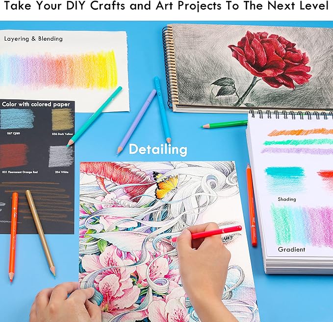 - Vivid,Vibrant Color : Each pencil inside is equipped with high quality cores.The silky smooth,velvety soft pencil leads lay down lots of vivid color,the colored core are highly pigmented, Perfect for coloring & drawing etc.Soft break-resistant cores produce incredible tone, perfect for blending and layering multiple colors.