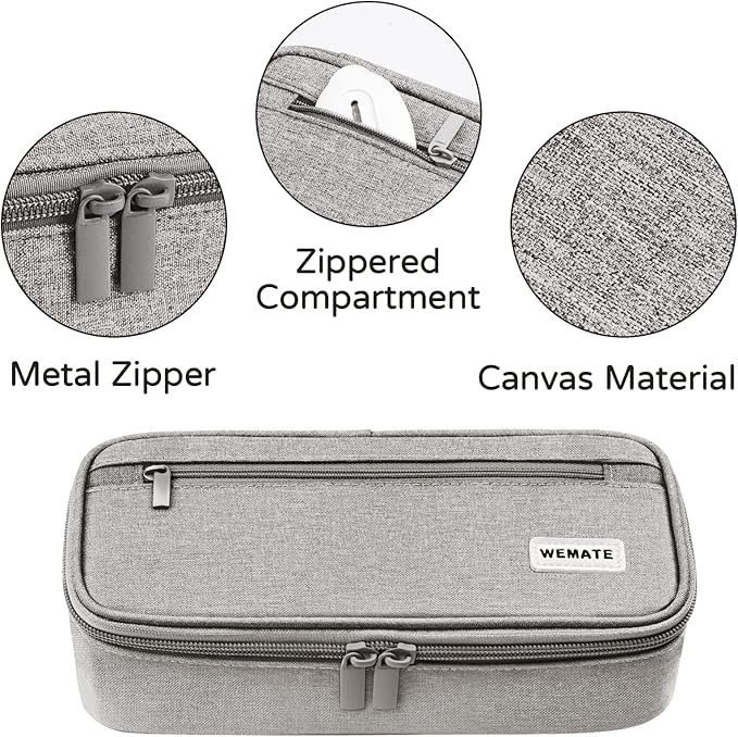 - Premium Canvas: WEMATE large-capacity pencil holder is made of 100% high-quality canvas, is strong and durable. Fine workmanship and provide you with dust-proof, not easy to damage pencil pouch.well-crafted and subjected to strict quality inspection, that not only looks great but will last for years to come