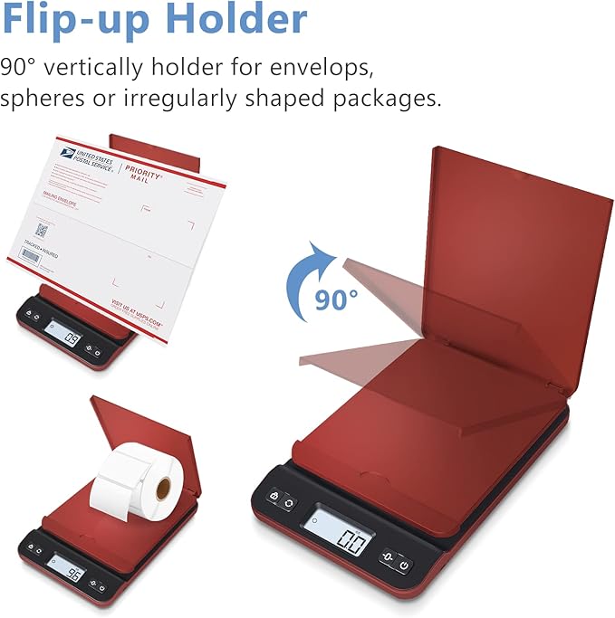 - FLIP-UP HOLDER & EASY STORAGE: The lid of the package scale is a compact holder that opens to 90° vertically to hold spheres or other irregularly shaped packages or items for easy weighing. The lightweight and compact design makes the scale easy to store and move