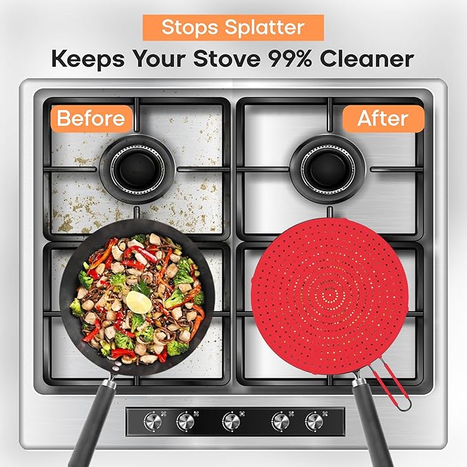 - SAFER COOKING EXPERIENCE – Helps reduce grease burns and stovetop mess. This silicone splatter screen for frying pan keeps your cooking area cleaner and safer.