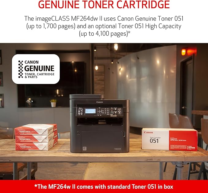 Canon imageCLASS MF264dw II - Monochrome Duplex Wireless Laser Printer, Multifunction with Scanner, Copier, Auto Document Feeder, Mobile Ready, 30 PPM, Black