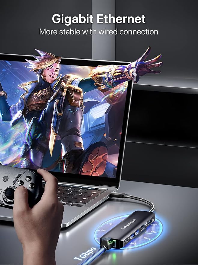 - 1Gbps ETHERNET HUB:This USB C LAN Adapter provides you with up to 1Gbps RJ45 network connection, super fast and stable