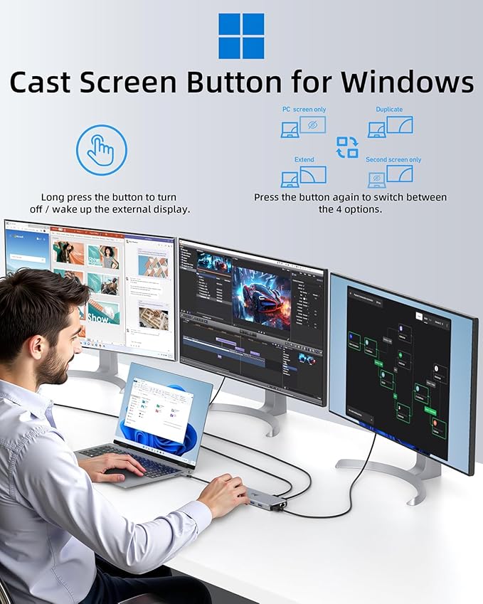 - 【Triple Display Docking Station】This usb c docking station only Windows System support MST and SST(Mirror & Extend Mode), HDMI port support up to 4K@60Hz (DP1.4 Source); DP port support up to 4K@60Hz. ❣️Note: For Extend mode, MAC OS can Only Extend One Monitor (4K@60Hz).