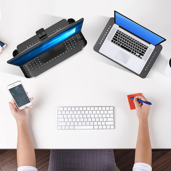 - Scientific Layered Storage Design - Double layer Space Layout: The upper layer lifts the screen to a comfortable viewing angle (increased by about 9.25 inches), and the lower layer shelf has a depth of 5.7 inches, making it easy to store keyboards, stationery, and other miscellaneous items.