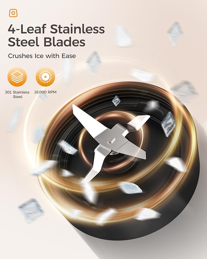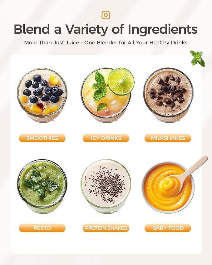 - POWERFUL PERFORMANCE – Experience flawless blending with a 500W motor and ultra-sharp stainless steel blades. This smoothie blender effortlessly crushes ice and frozen fruits, delivering a perfectly smooth texture every time. Ideal for protein shakes, frozen drinks, and more!