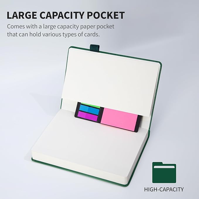 - 🌈【Multifunctional Accessories】⭐This classic 7.6" x 10.3" vegan leather journal features a durable and water-resistant cover, 320 college ruled lined pages, inner expandable pocket, pen holder, ribbon bookmark & elastic closure band