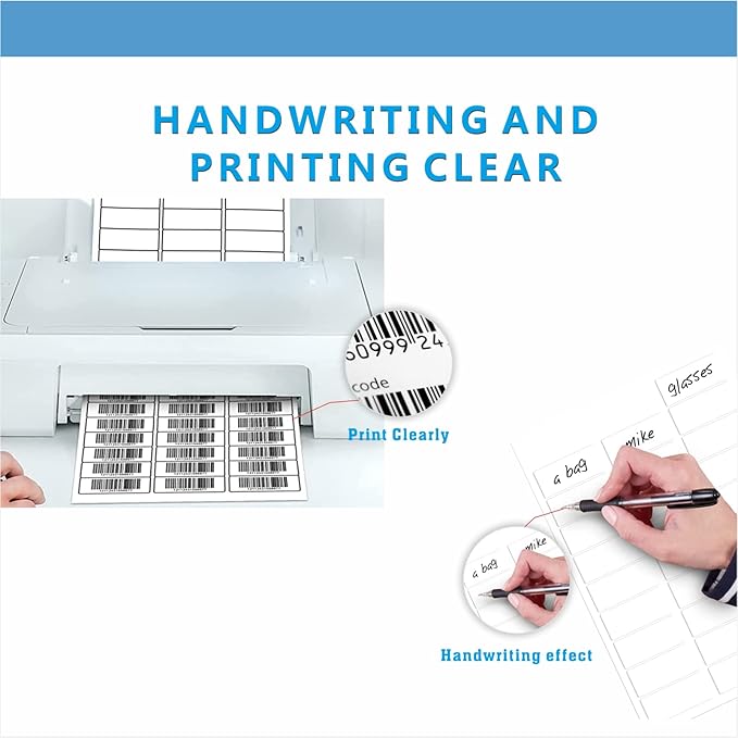 - 【STANDARD SHEET SIZE】-- Blank white address labels sheet size: 8.5" x 11", per sheet comes with 30 labels that size: 1 x 2-5/8" (2.5 by 6.6cm), 60 sheets total 1800 labels give more labels to organizing your item. Labels are big enough, you will get a good amount of space to work with and to be seen easily after printing and writing
