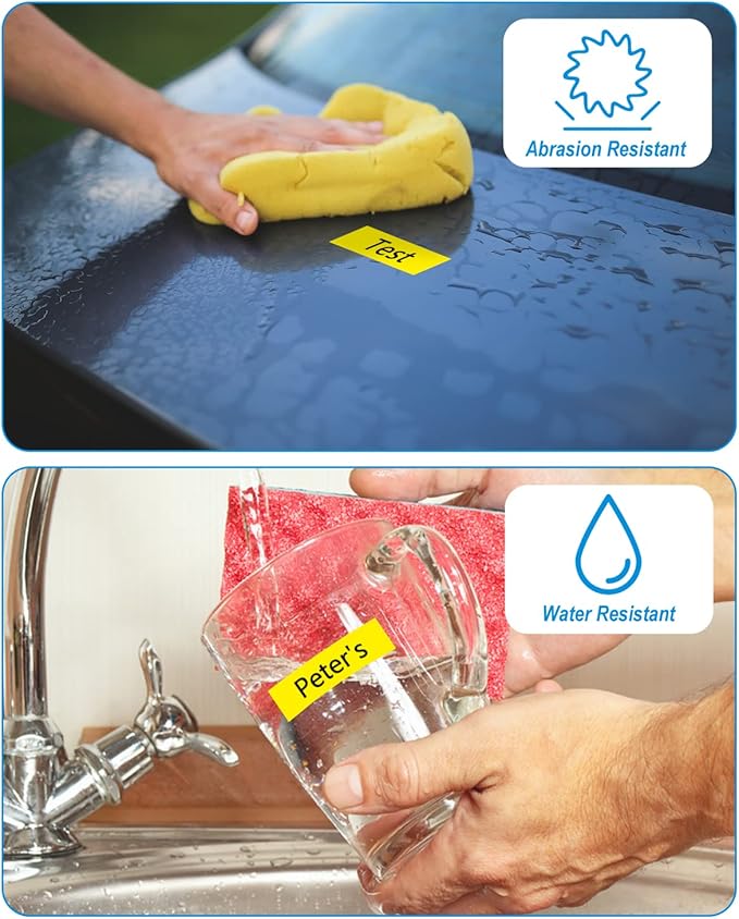 - Versatility: The tze 12mm tape with standard adhesive that is designed to stick to a variety of surfaces, including organizing files and folders, labeling storage containers, making it ideal for labeling items both indoors and outdoors