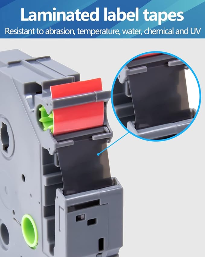 - Versatility: The tze 18mm tape with standard adhesive that is designed to stick to a variety of surfaces, including organizing files and folders, labeling storage containers, making it ideal for labeling items both indoors and outdoors