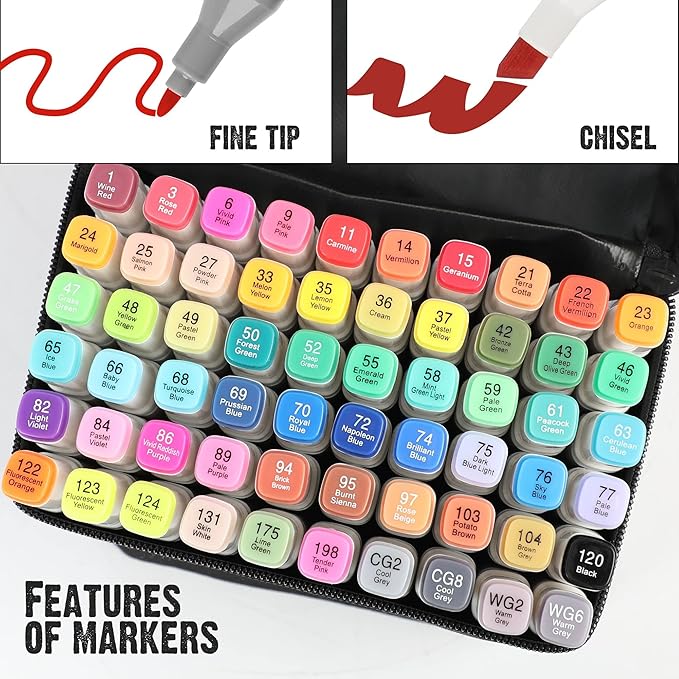 Alcohol Markers: Double Tipped Art Marker, 60 Count, suitable for Adults Artists Painting, Coloring Drawing Sketching, Multicolor