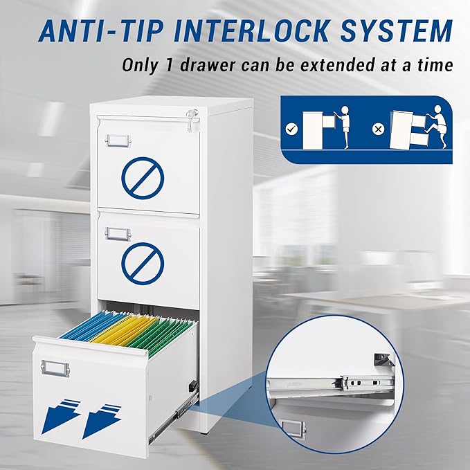 - SUITABLE FOR HOME OFFICE & PERSONAL USE - This metal filing cabinet does not need to take up too much space. You can put it in the office or your home to use it. You can also use it as a personal belongings storage cabinet to store your various letters and documents, etc.