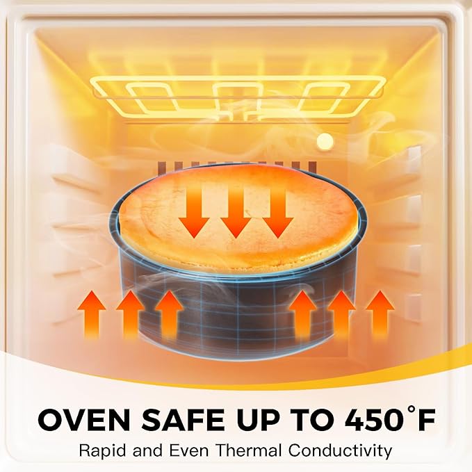 - PREMIUM THICKENED MATERIAL - With 27% thicker carbon steel, this durable 6inch cake baking pans set is constructed from heavy-gauge carbon steel for stability, even heat distribution, and durability for years to come. Warranty against peeling off with heat-resistance temperature: 450℉