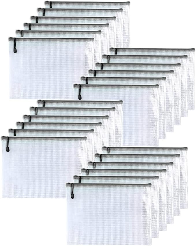 Oaimyy-24PCS-11 x 14" inches-Mesh Zipper Pouch, Plastic Zip File Folders Puzzle Bags for Organizing,for School Office Supplies,Travel,Home Storage-Black