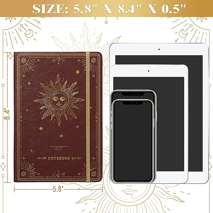- 🌞 HARDCOVER JOURNAL - Classic ruled pages design for everyday use + The sun stamping in front cover and water-resistant design + Perfect size to carry in a backpack for easy everyday outing.