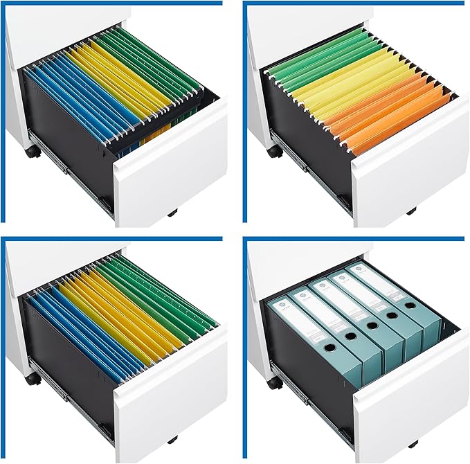 - Optimize your work space: The file cabinet adopts the structure of 2 drawers, 1+1 space combination. Small and large file cabinets can be organized and stored, making your office space more comfortable.