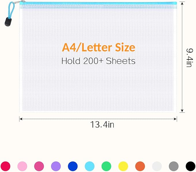 Sooez 36 Pack Mesh Zipper Pouch with Sticky Labels, A4 Mesh Bags for Board Game Puzzles Organization Storage, Durable Letter Size File Folders Organizer for Teacher School Classroom Office Supplies