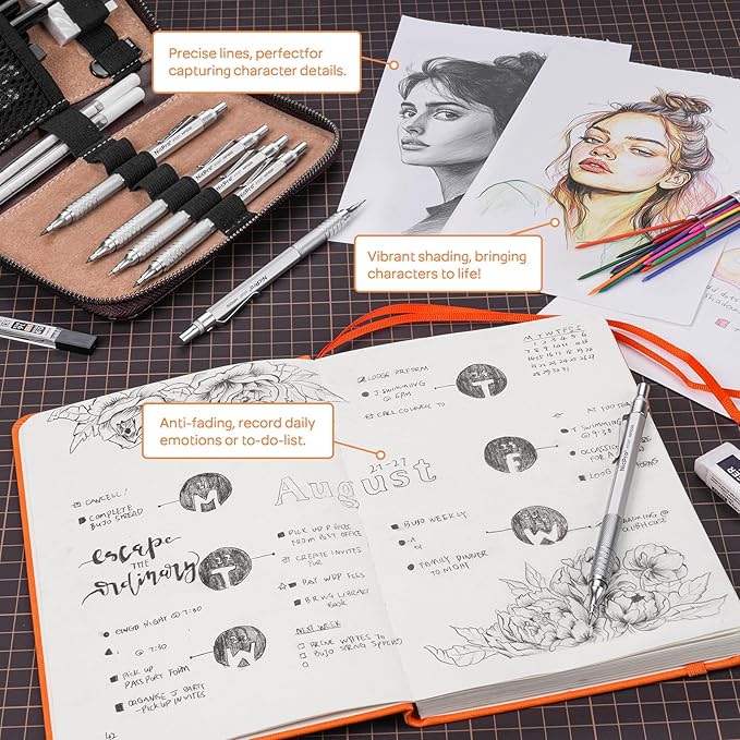 - 5. Ideals for teachers and students, artists, professionals,engineer alike. Perfect for writing, drafting, drawing, sketching or architectural working. Convenient to carry your whole mechanical pencils set everywhere