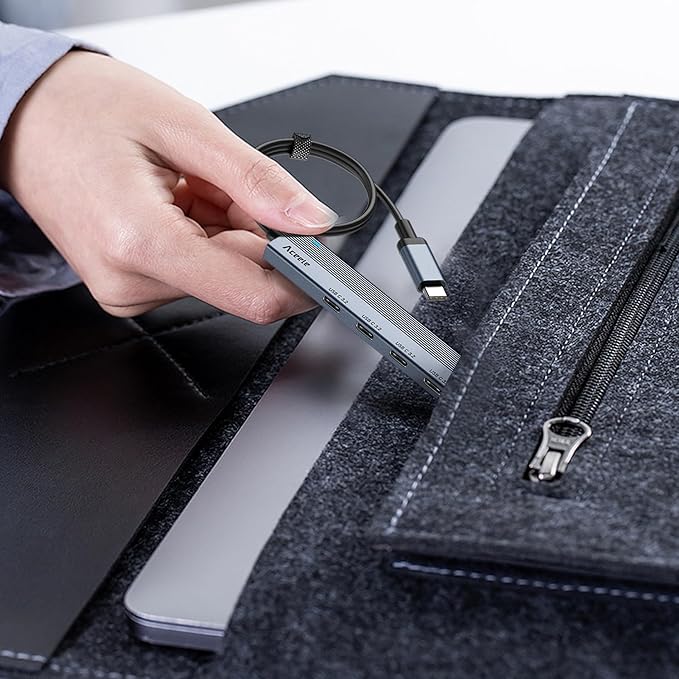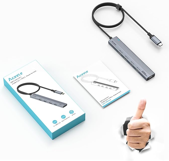 Aceele USB C Hub 10Gbps, 4 Port USB 3.2 Gen 2 Hub, USBC to USB-C Hub with Type-C Power Port, 2ft Extension Long Cable USBC Adapter Data Hub for MacBook Pro, MacBook, Samsung Chromebook, etc