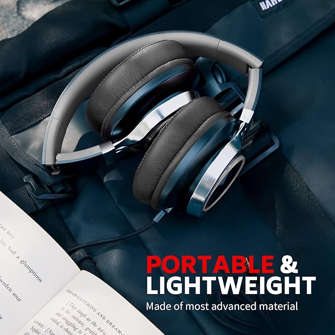 - Lightweight & Foldable: Indulge yourself in the music world anytime anywhere thanks to the headphone’s lightweight, portable and foldable design with adjustable headband and enlarge deeply cushioned ear pads, which are ideal for easy on the go or travelling
