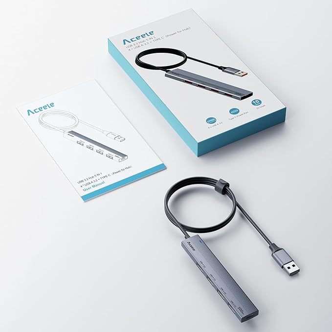 - [Widely Compatibility]: Aceele USB Hub 3.2 Gen 2 is compatible with Windows, Mac OS, and Android systems. Plug and play, no driver required. Slimline and sleek, easy to carry.