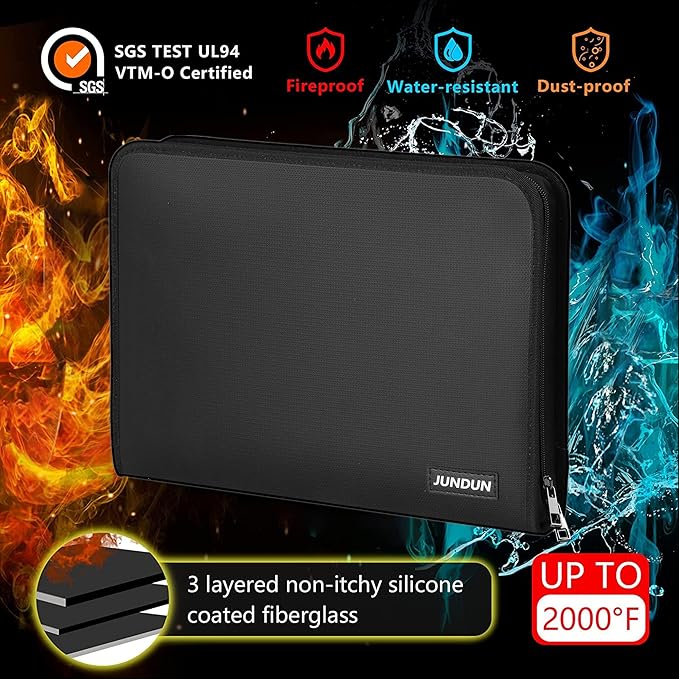 - HIGH-QUALITY MATERIALS: Protect your documents with our fireproof accordion file organizer.Made of double-layered,non-itchy,silicone-coated fiberglass,it can withstand up to 2000℉ and has passed the SGS Test (UL94 VTM-0 Certified). Highly water-resistant,it's the perfect solution for unexpected spills or accidents.Keep your files organized and easily accessible with our expanding file organizer.Invest in added protection today!