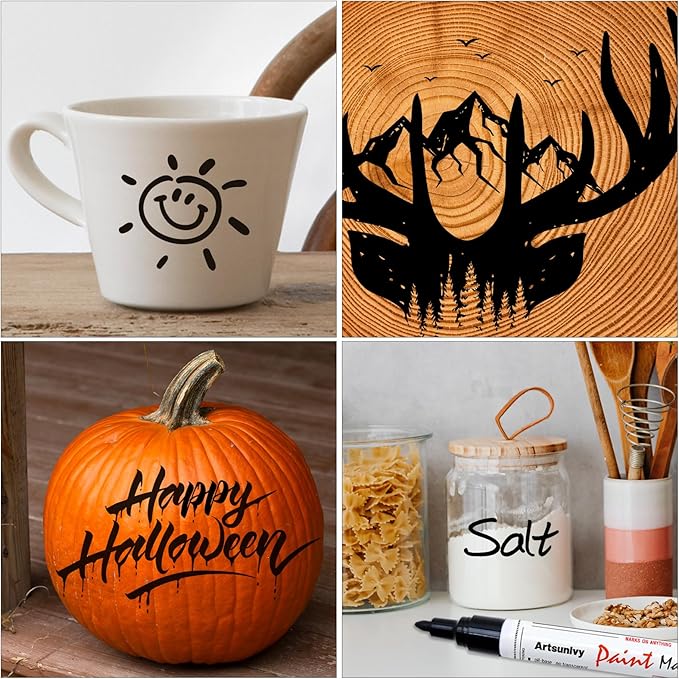 - 【Multipurpose】These wonderful paint pens can be used on multiple surfaces, such as rock, ceramic, wood, leather, plastic, fabric, canvas, stone, glass, metal, chalkboard craft supplies etc.