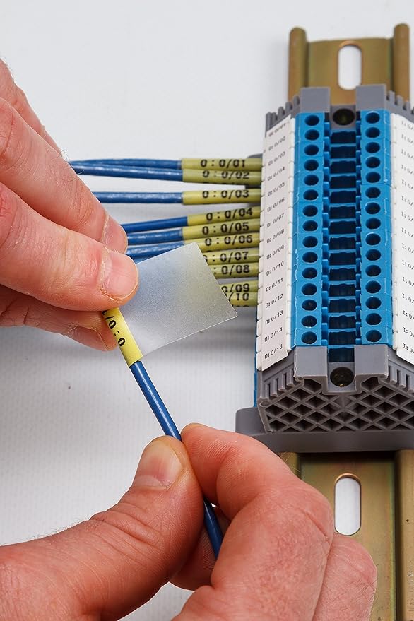 - Self-laminating vinyl labeling tape provides a protective layer over text for excellent resistance to abrasion, dirt, oils and solvents.