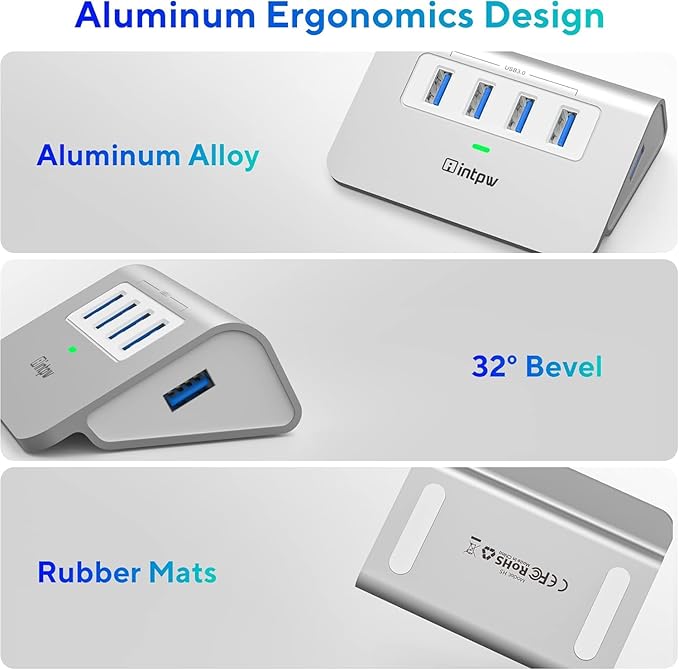 - γππ₯ππ’π‘π’π πππ¦ πππ¦πππ‘γ:The USB Hub for computers is made of aluminium unibody with a smooth appearance and better heat dissipation, which provides High quality protection. The extra usb ports for laptops temperature is controlled below 45β to ensure the safety and stability of all USB ports during operation.The usb 3 hub Ergonomic 32-degree angle saves effort when plugging and unplugging USB devices and makes it more stable on the desktop.