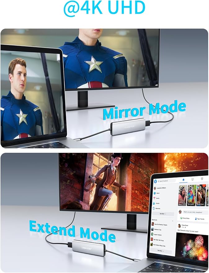 - 【Wide Compatibility】Lemorele usb c hub adapter compatible with all systems and devices with USB C ports that support video output; such as Switch/Xbox/PS4/Chromecast with Google TV, Mac OS/Windows/Chrome OS/Android/iOS/Linux and compatible with MacBook Pro/Air M1, iMac, iPad Pro/Air M1, Dell XPS, Asus Zenbook, Huawei, HP, Lenovo , Microsoft Surface. and various mobile phones, keyboards, mice and other external devices.