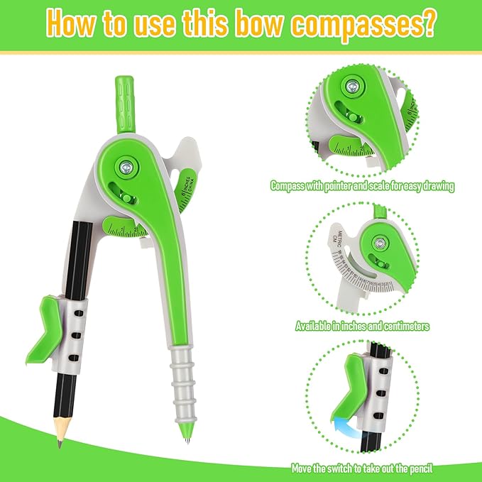 - 2 Diverse tips design compass: compass is made of plastic, sturdy mechanism can hold a radius well; The opposite side of the pencil end is an adjustable separated jaw which allows you to fix the pencil