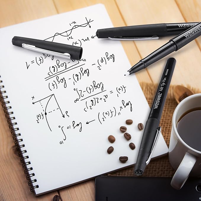Black Felt Tip Pens, 32 Black Pens, 0.7mm Medium Point Felt Pens, Felt Tip Markers Pens for Journaling, Note Taking, Planner, Writing,Drawing.Perfect for Art Office and School Supplies