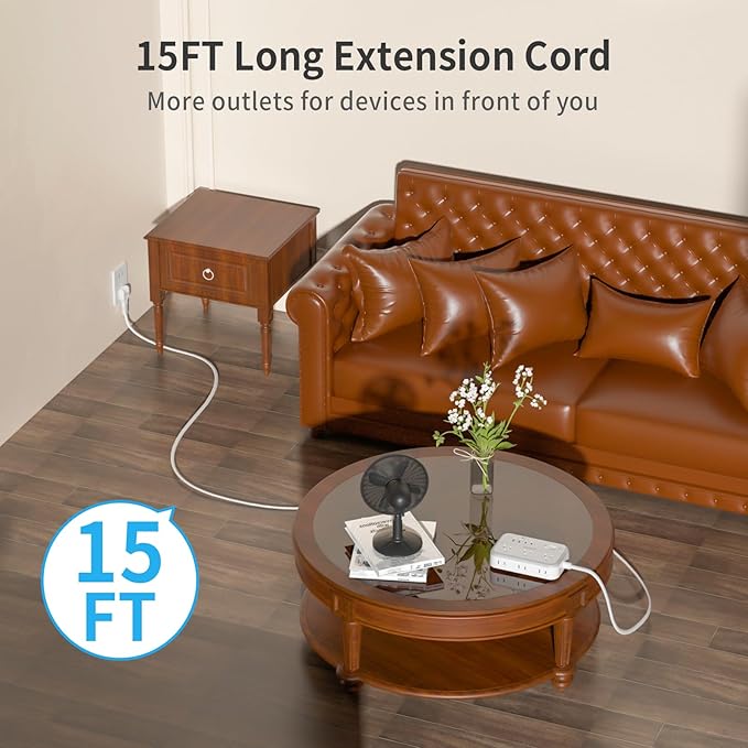 - 【 15 ft Long Extension Cord For Anywhere】Are you still worried that the power cord is not long enough? NTONPOWER 15 ft power strip to the white extension cord provides extra outlets at optimal reach in home and office spaces.