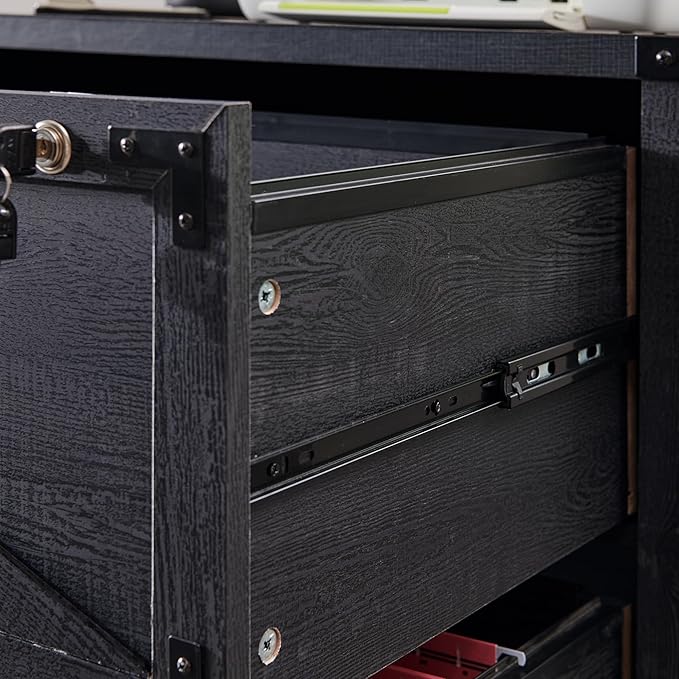 JXQTLINGMU 2 Drawer Farmhouse File Cabinet, Lateral Filing Cabinet with Lock for Home Office, Compatible Legal Letter A4 F4 Size, Black