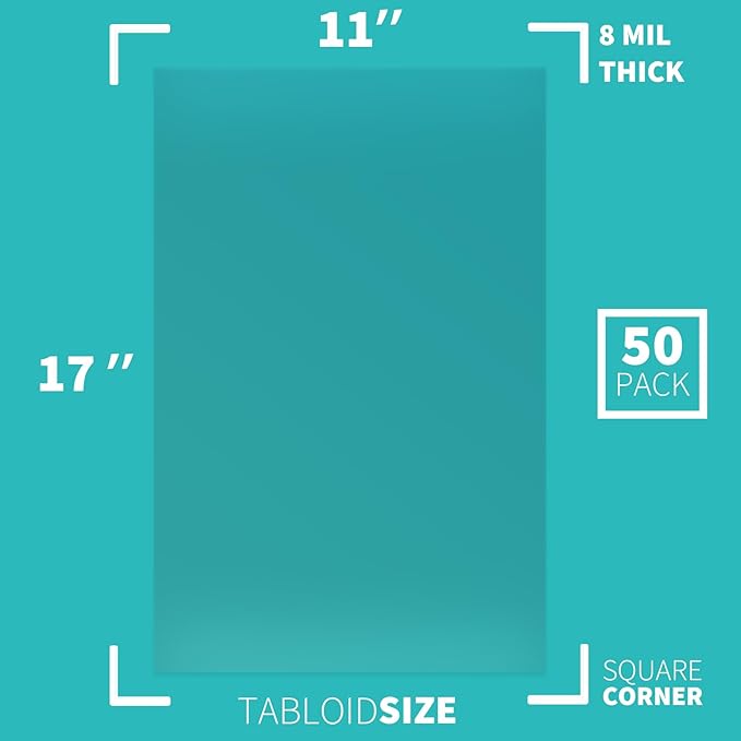 Binditek 50 Pack 8 Mil PVC Clear Binding Presentation Covers, 11 x 17 Inches, Tabloid Size, Square Corners, Un-Punched, Office School Supplies