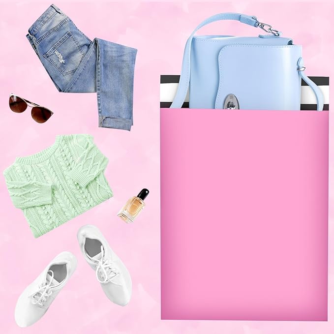 - Eye-Catch Poly Mailers Bags--- Usable size: 14.5x19 Inch, 100Pack. These shipping bags have a sakura pink outer surface, and gray inner lining, a highly attractive color that makes your products look better. Their smooth texture makes it easy to affix self-adhesive stamps and address labels, helping you customize your brand.
