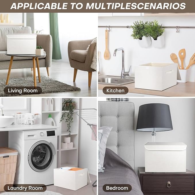 - 【Multi-purpose Storage Shelves】 - These decorative storage bins with lids are perfect for organizing and storing out-of-season clothing, shoes, pet products, toiletry storage, sport gears, office supplies, these large collapsible storage bins are pretty for living room, bedroom, closet, bathrooms, utility room, under bed, office even in the hallway. Whether as a housewarming gift this cubby storage bins are most suitable!