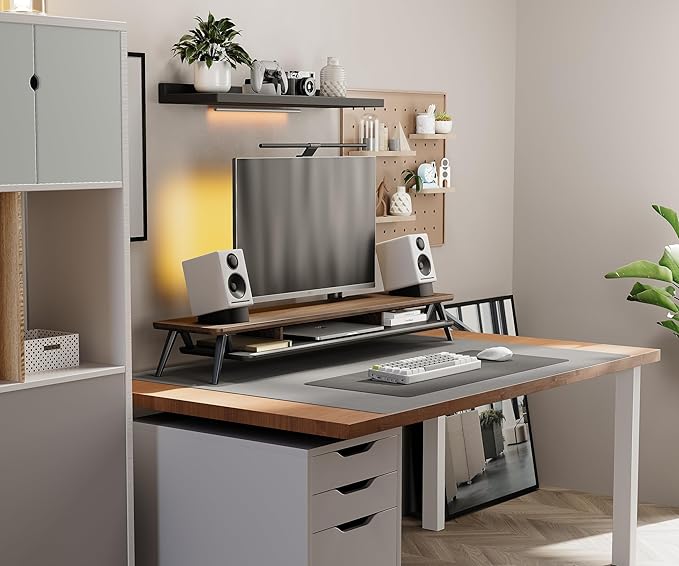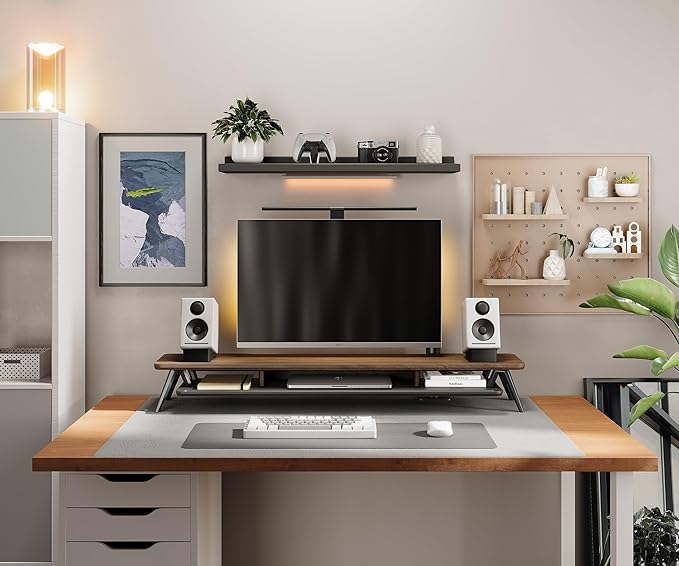 Fenge Dual Monitor Stand, Monitor Stands Riser for 2 monitors, 42.5 Inch Wood Desk Shelf with Storage Organizer and Cable Management for Office Desk Accessories