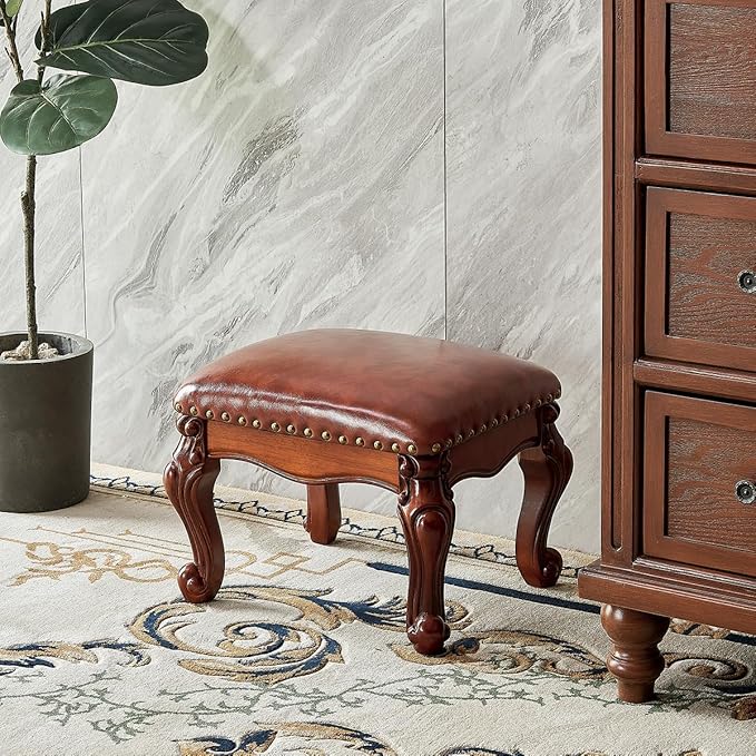 - 【Water-based Paint】Ottoman using human-friendly water-based paint coating, non-toxic and odorless, each foot has a hand-carved carved design, exquisite and delicate, idea as a gift for your family friends