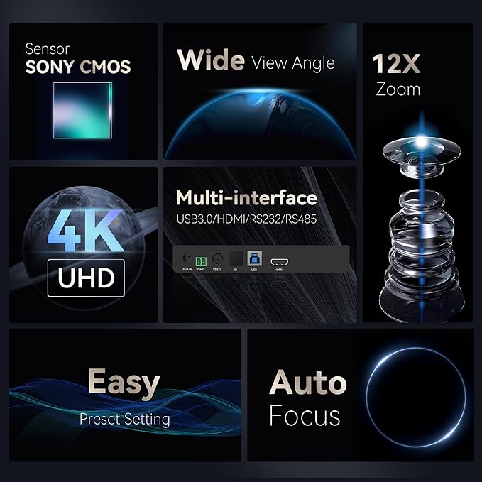 - 🌟【𝟒𝐊 𝐔𝐇𝐃 𝐏𝐓𝐙 𝐂𝐨𝐧𝐟𝐞𝐫𝐞𝐧𝐜𝐞 𝐂𝐚𝐦𝐞𝐫𝐚】Capture every detail and provide an immersive experience with Tenveo UHD 4K PTZ Conference Room Camera. With its exceptional 4K resolution, 12X Optical Zoom, 1/2.8'' CMOS Sensor, 8.29 megapixel Lens and 90° FOV, you can now capture stunningly detailed visuals that bring your virtual meetings or events to life. The wide-angle lens ensures that no participant is left out of the frame, while the 12X Zoom allows for close-ups of key speakers and presenters.