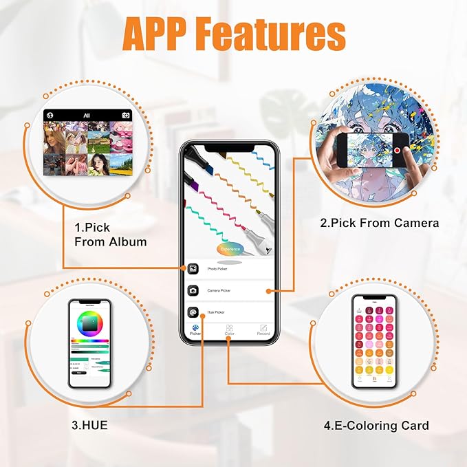 - PERFECT COLOR MATCHING WITH APP: Our professional alcohol coloring markers comes with free app that allows you to quickly find the right marker and achieve the perfect color for your painting. Our dual tip alcohol marker for artist solves the problem of color difference and inability to quickly identify markers in other products, making it very suitable for beginners and advanced users
